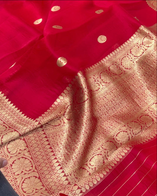 Peach Banarasi Handloom Double Kora Katan Handloom Saree