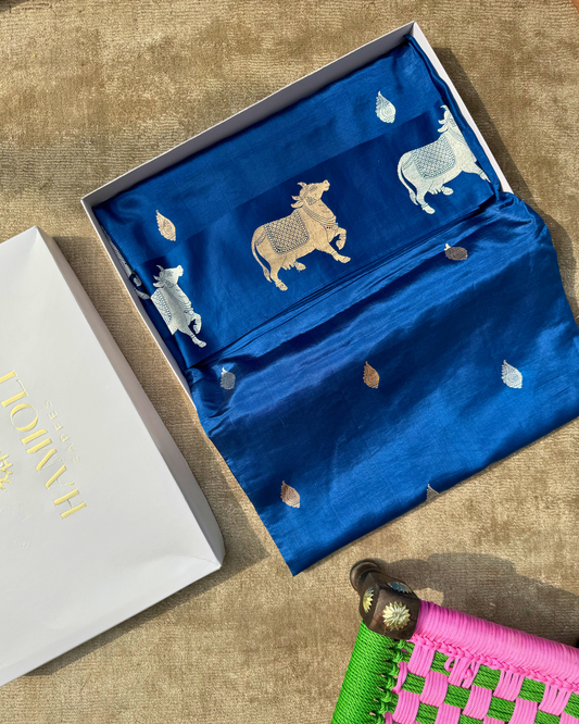 Deep Sea Blue Pure Banarasi Mulberry Soft Silk Saree