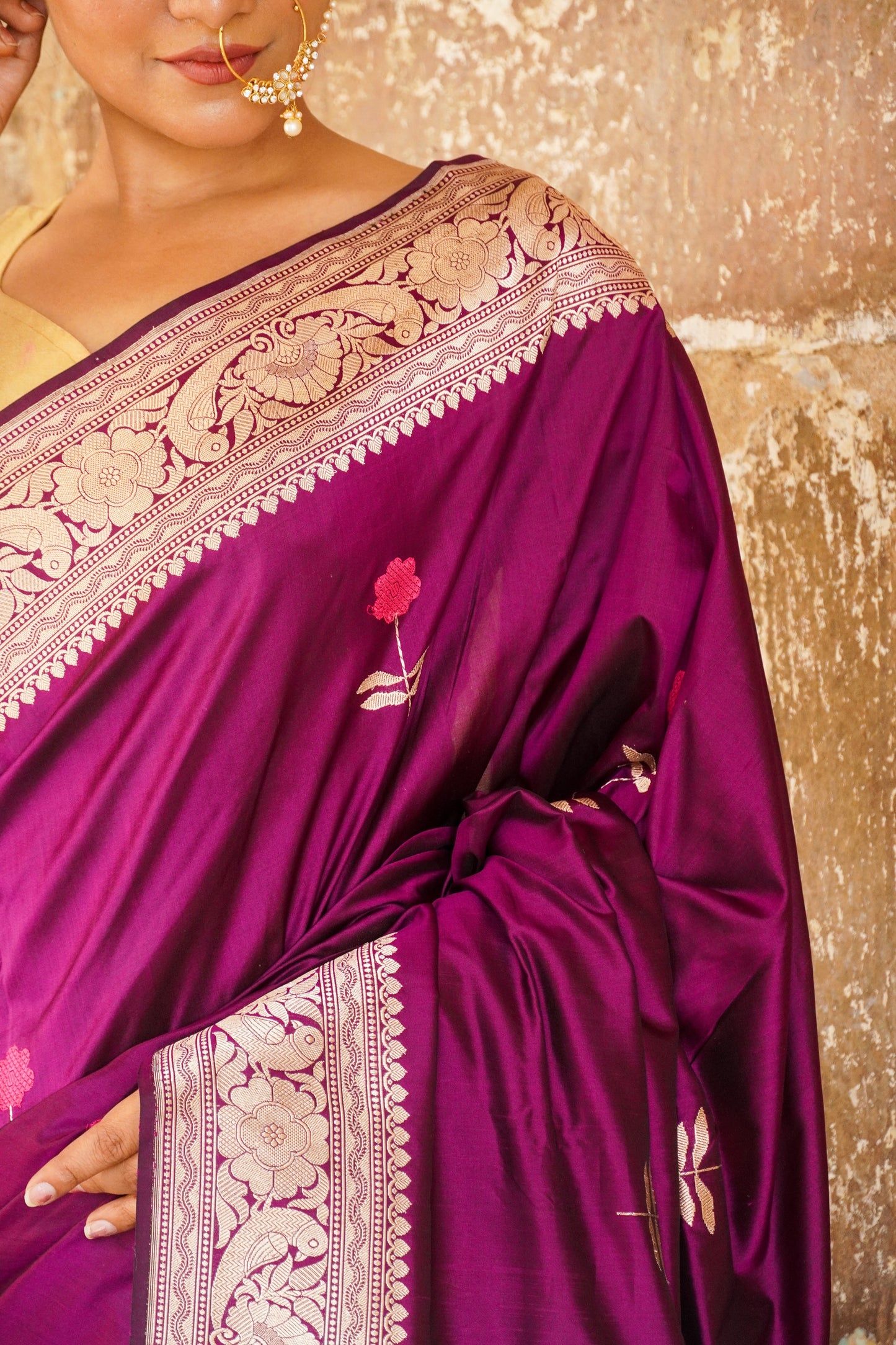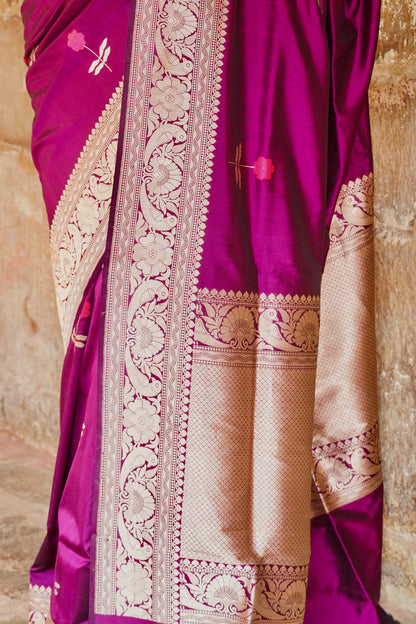 'Aayat' Wine Alfi Handweave Banarasi Katan Saree