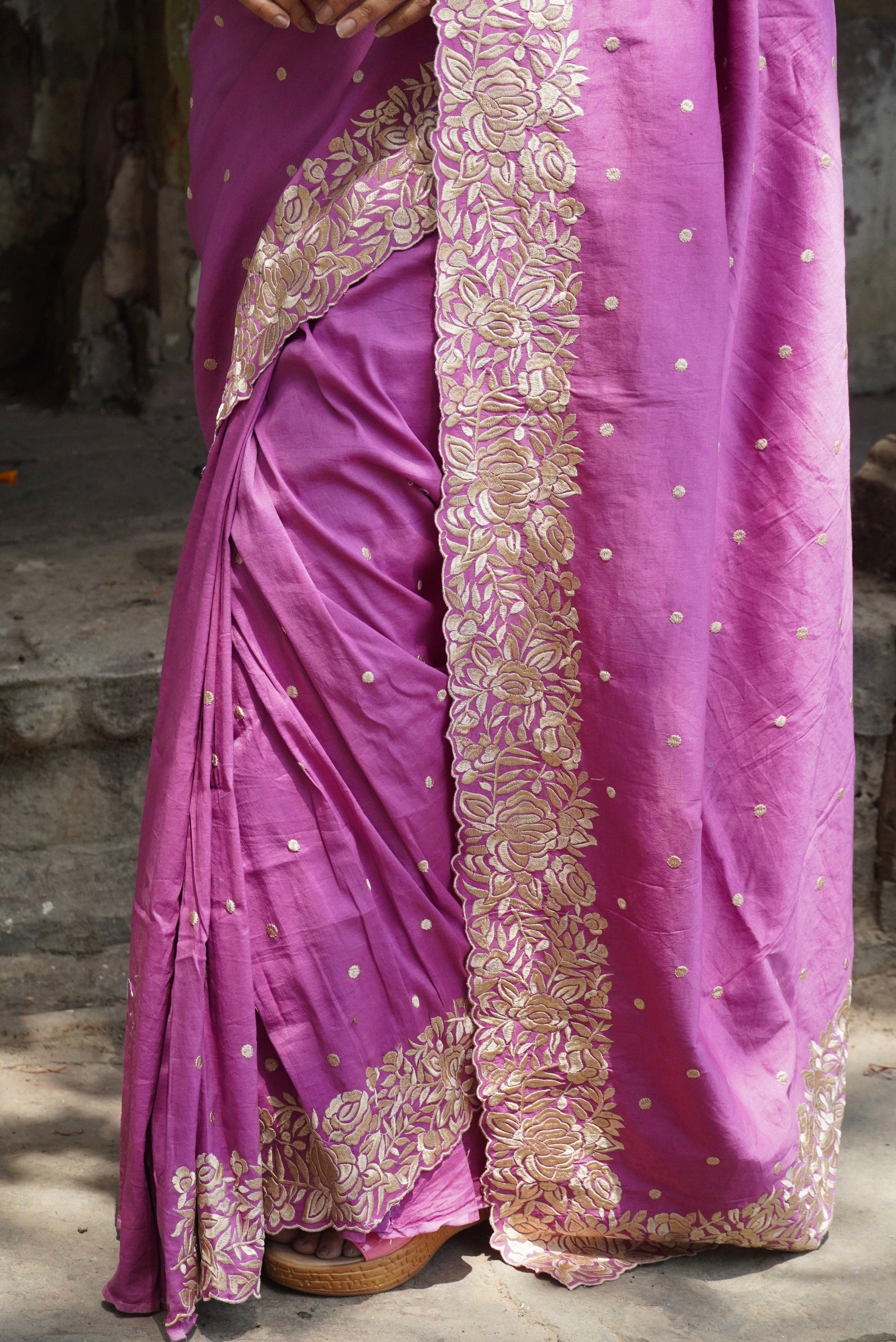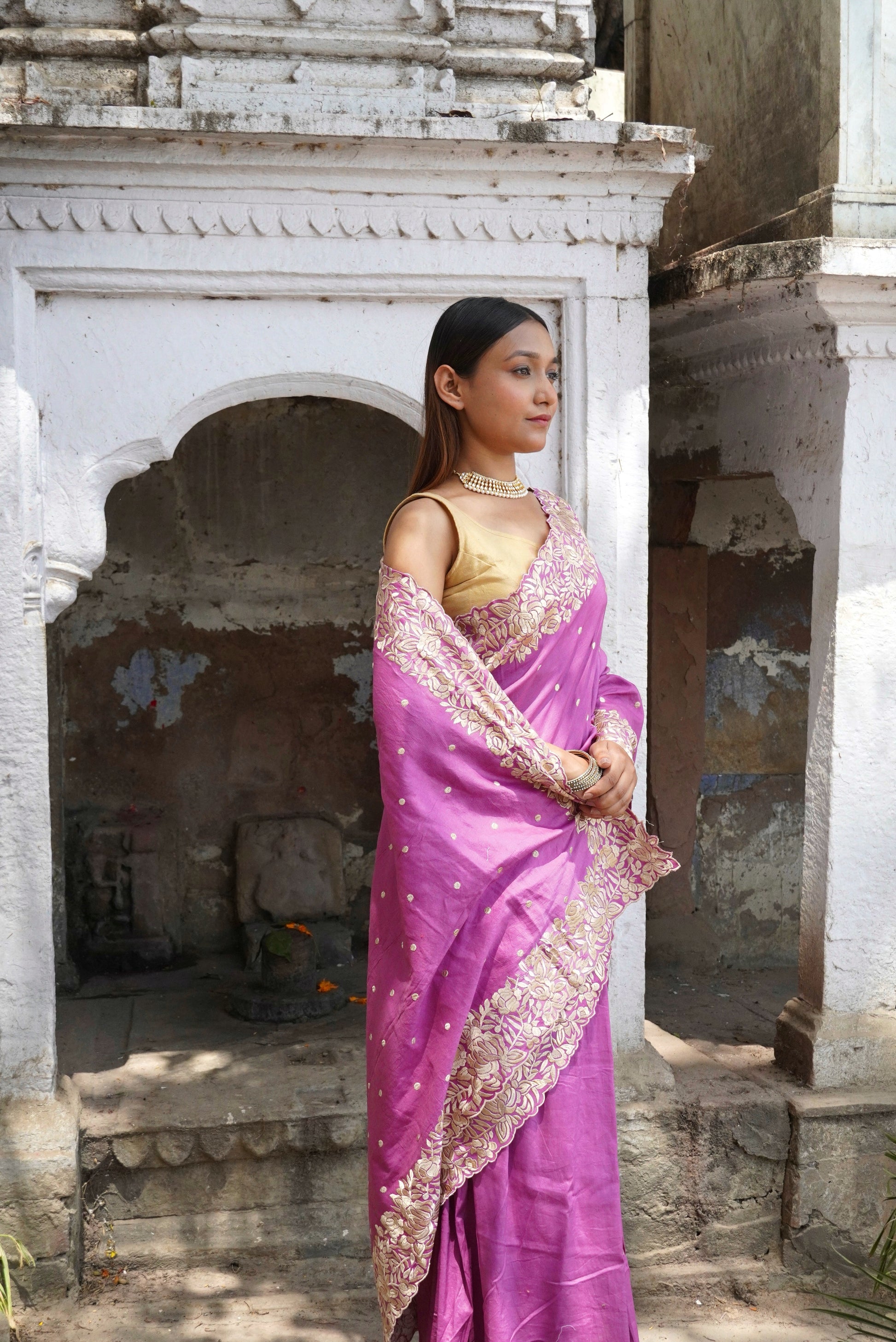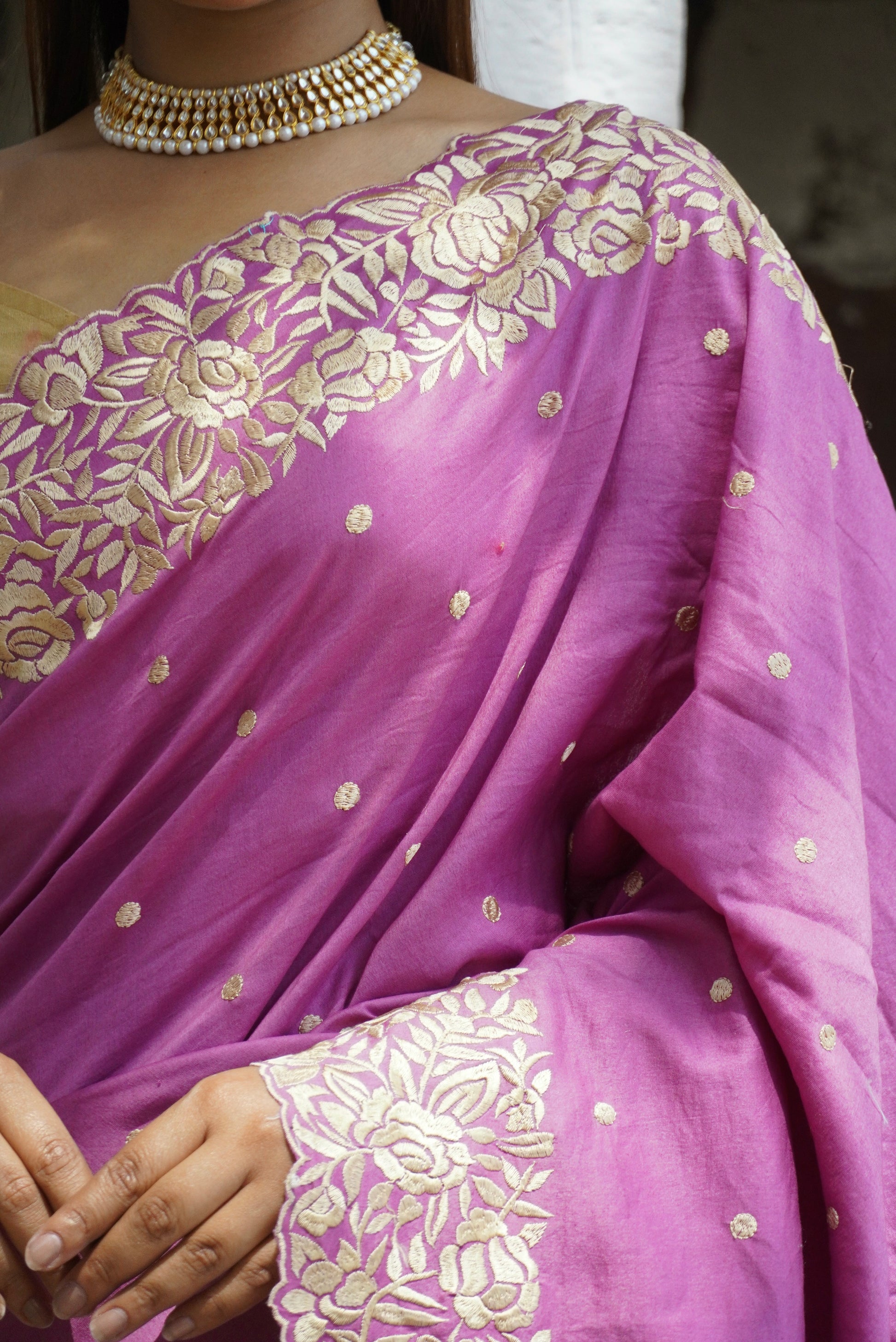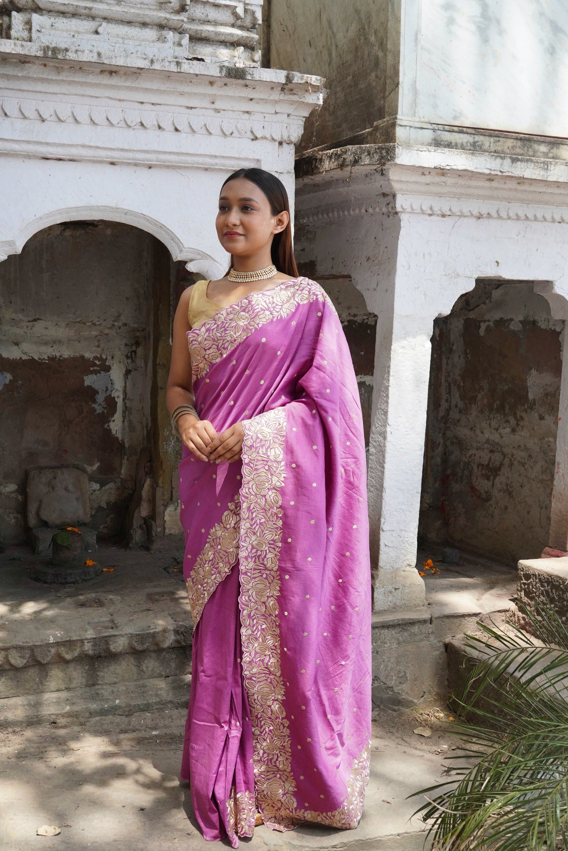 Magenta Pink Pure Chinya Banarasi Silk Saree