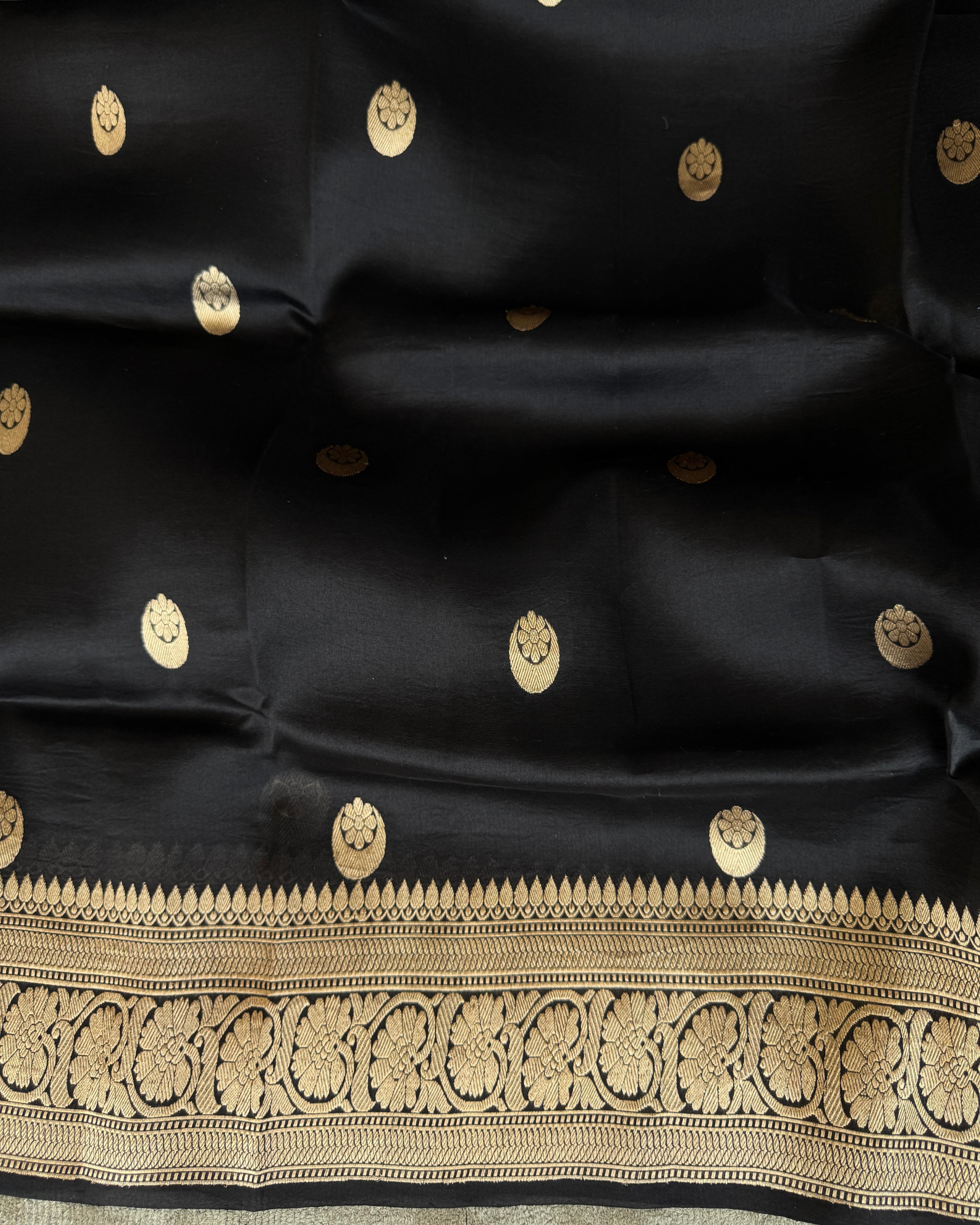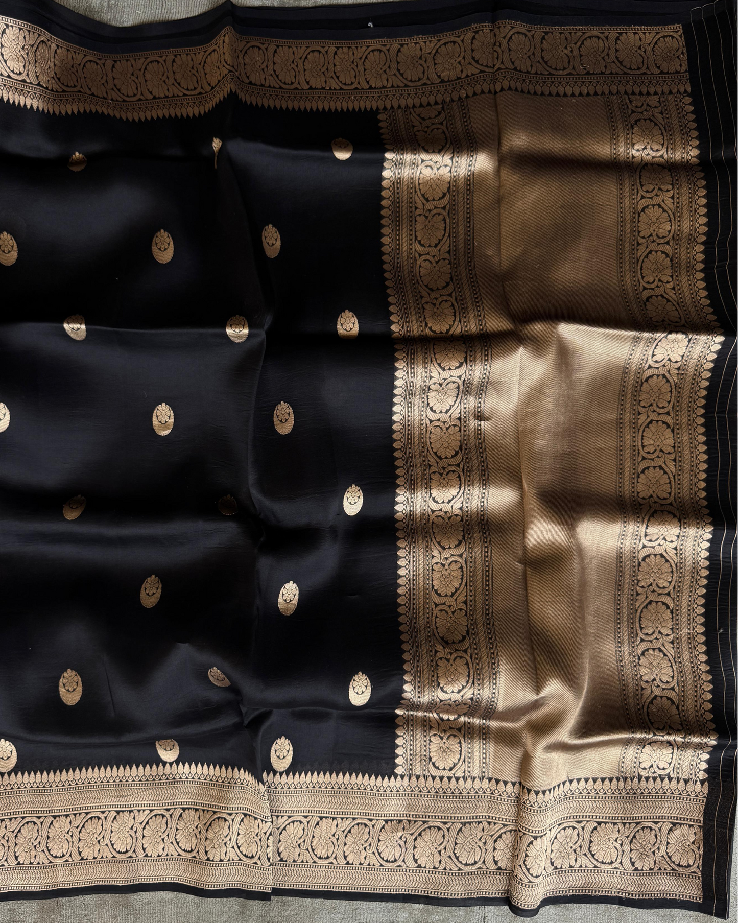 Black Chand Tara Pure Banarasi Kora Silk Saree