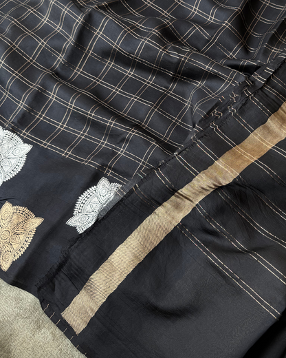 Black Mulberry Pure Banarasi Soft Silk Saree