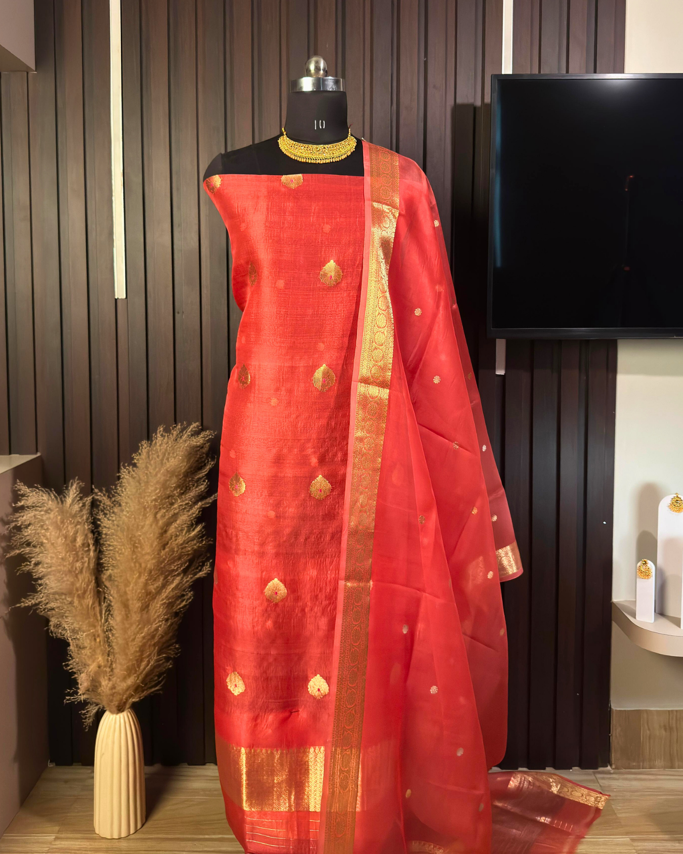 Dusty Peach Pure Banarasi Kora Silk Suit Set with Dupatta