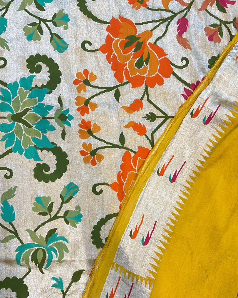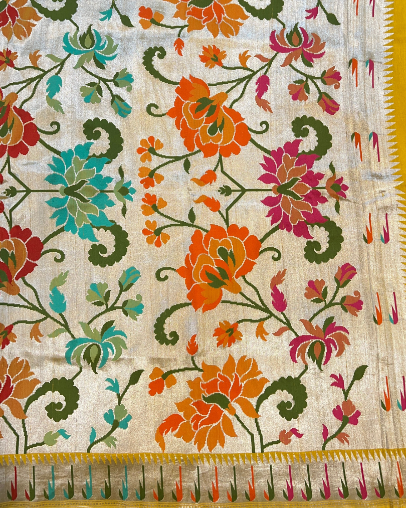 Specialty: Featuring masterful Kadhua weave and authentic floral Meenakari work meticulously handwoven, this saree exemplifies exceptional craftsmanship and attention to detail.
