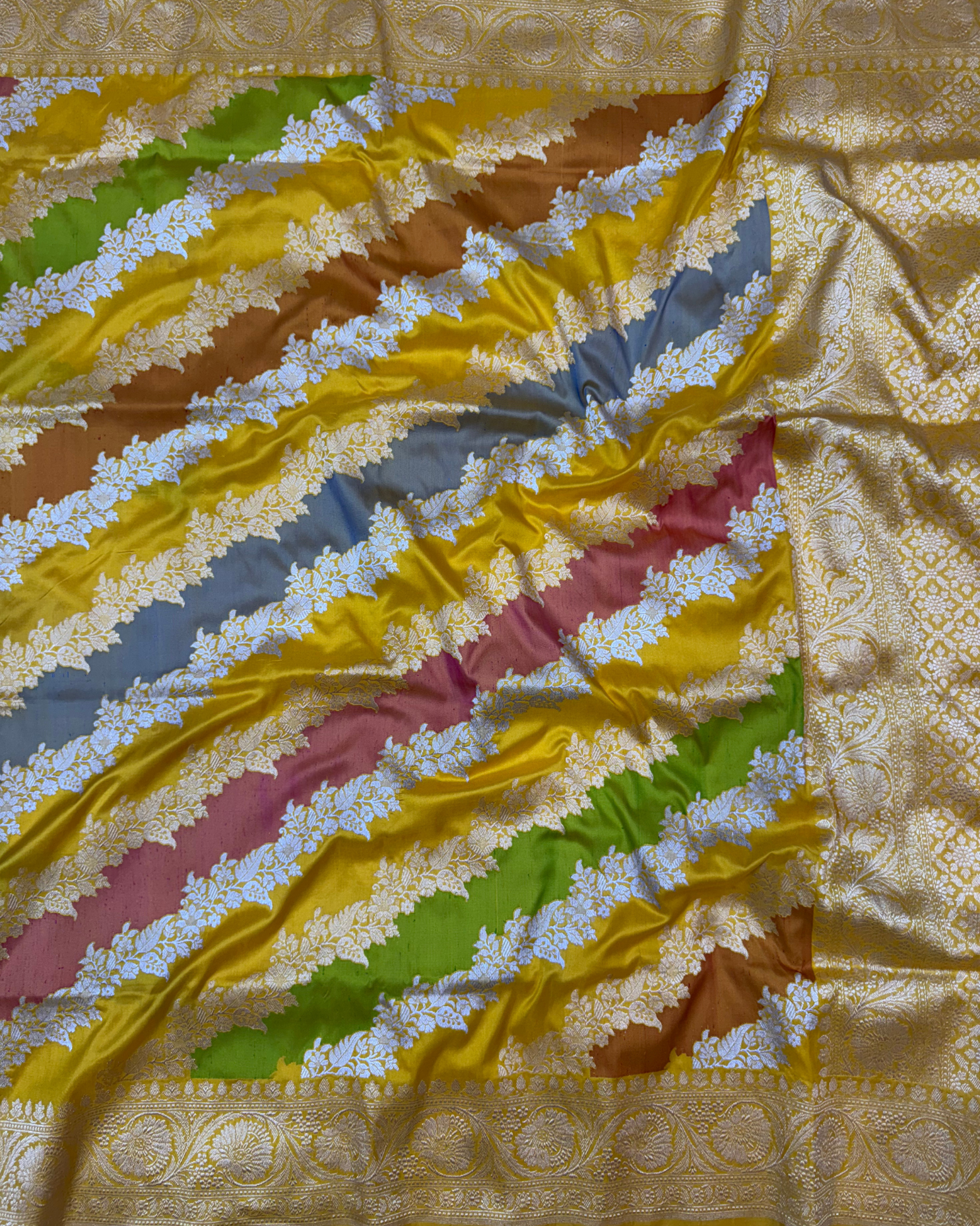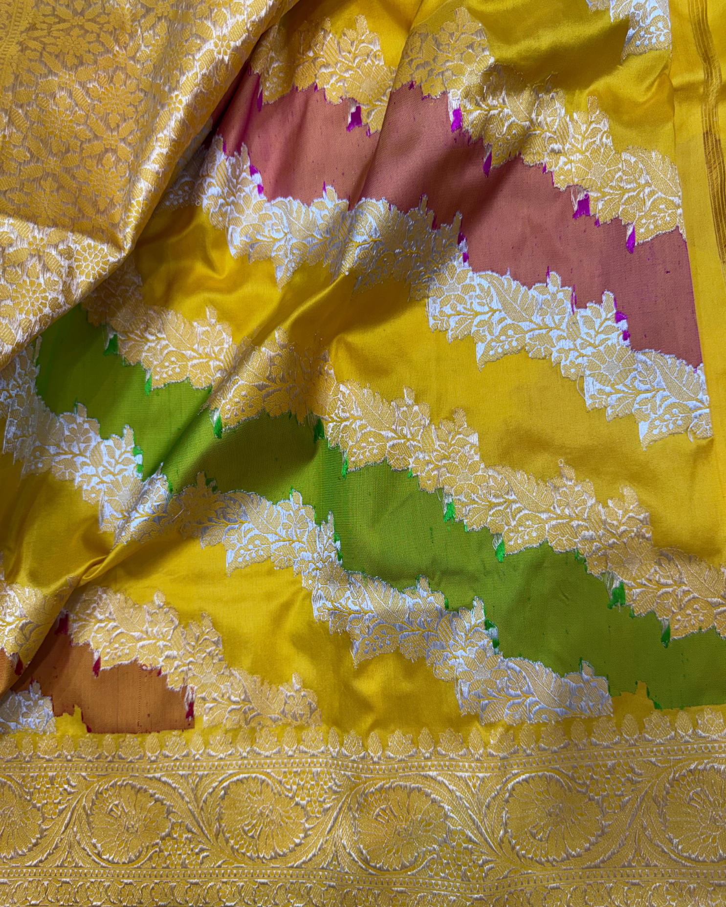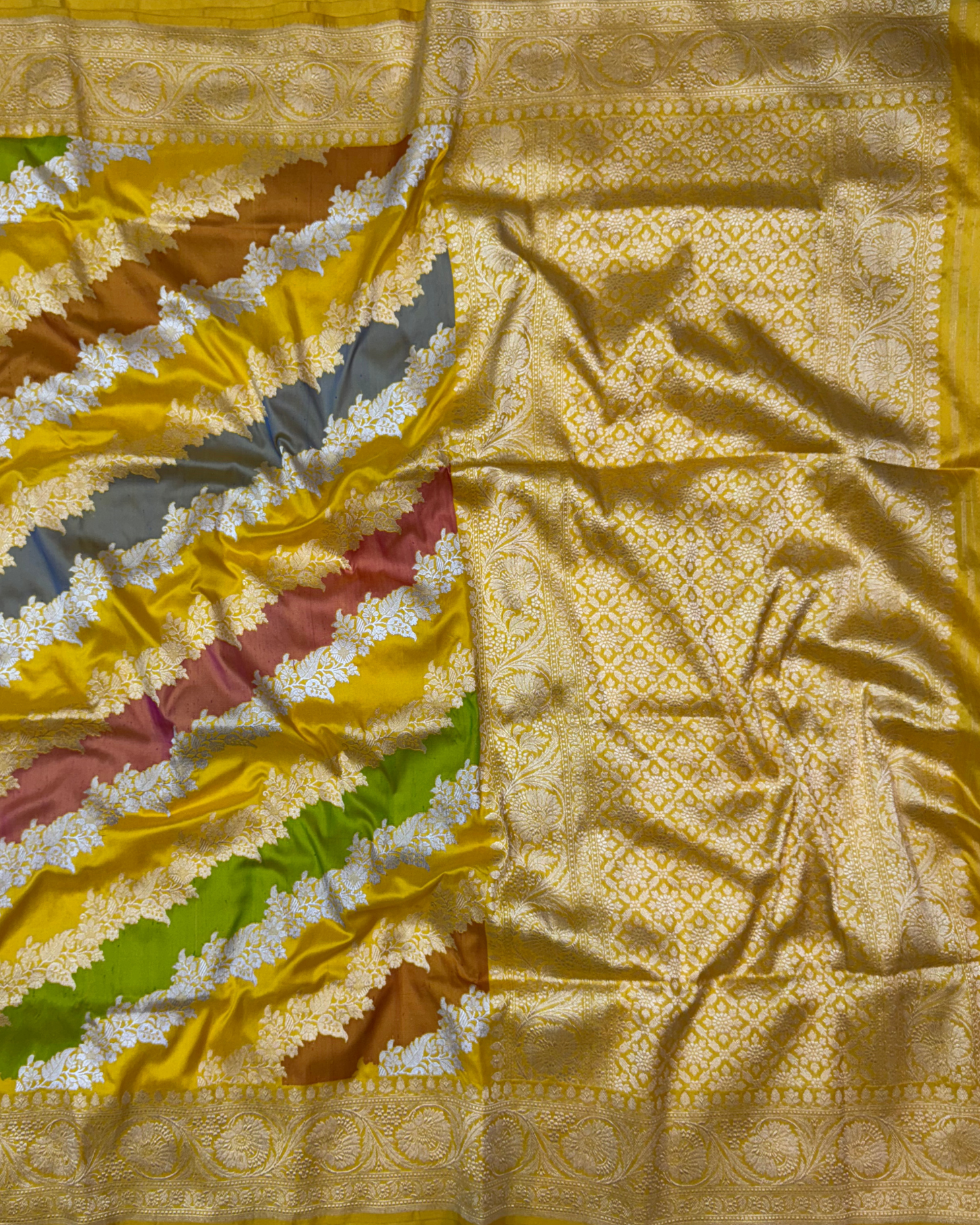Multicolour Yellow Katan Silk Rangkat Handloom Saree