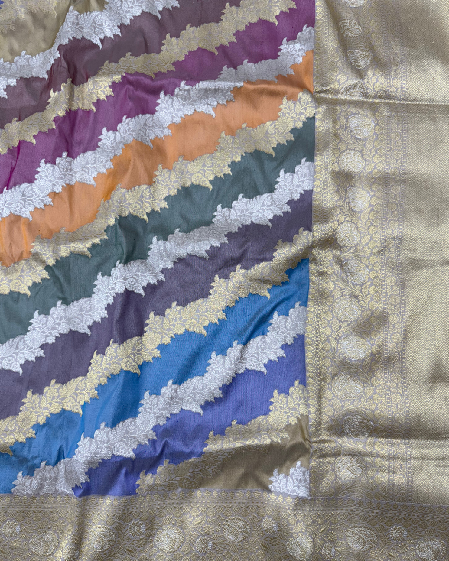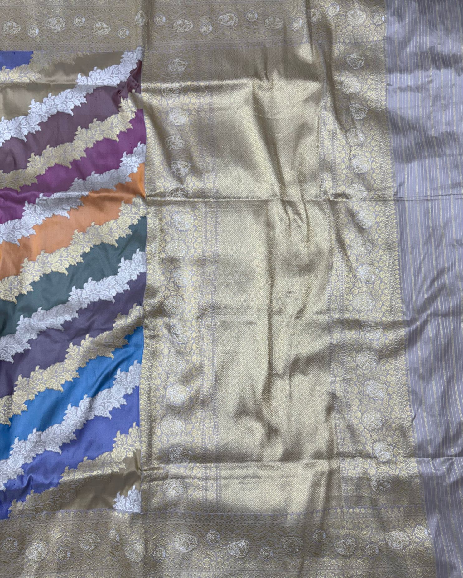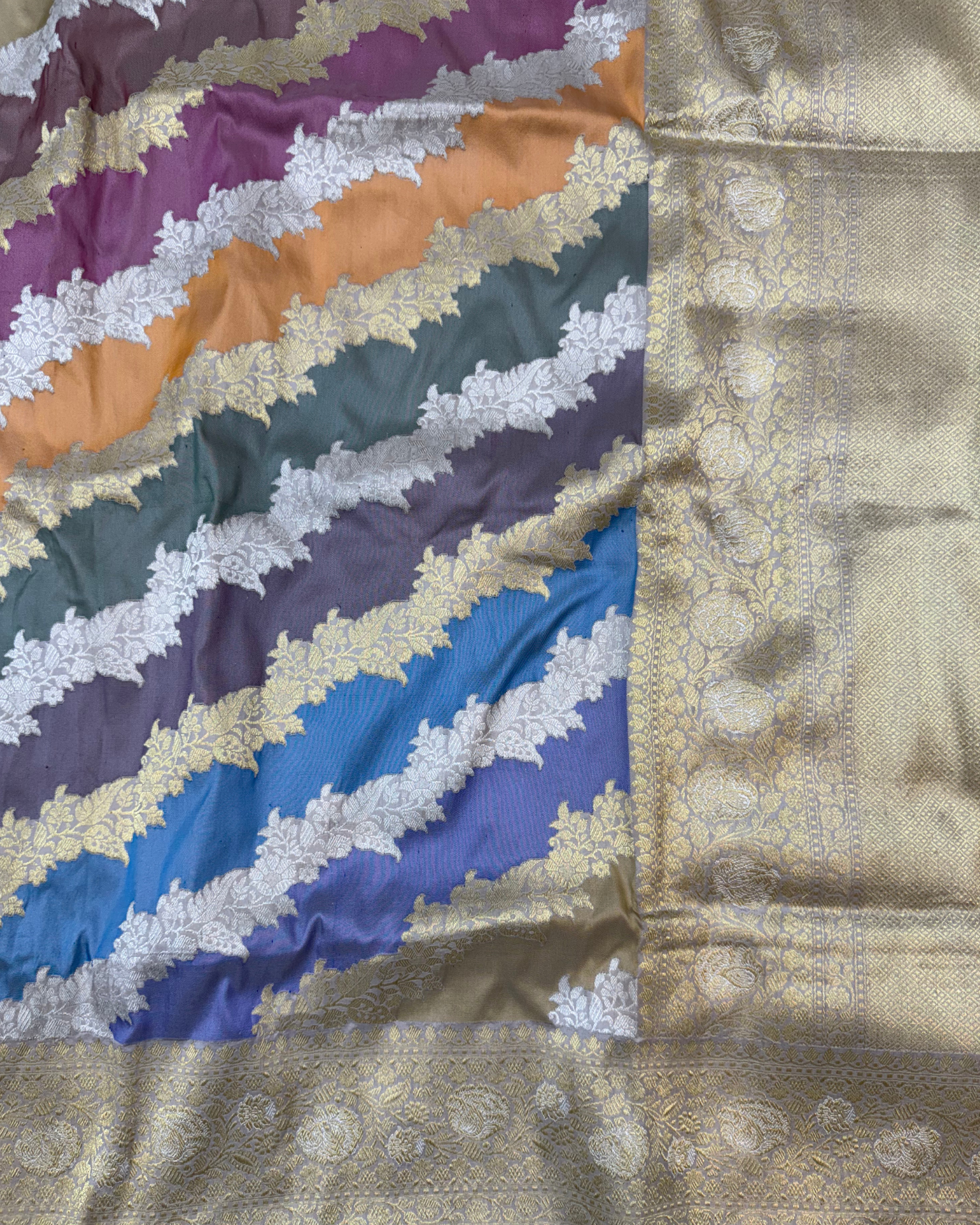Multicolour Pure Katan Silk Rangkat Handloom Saree