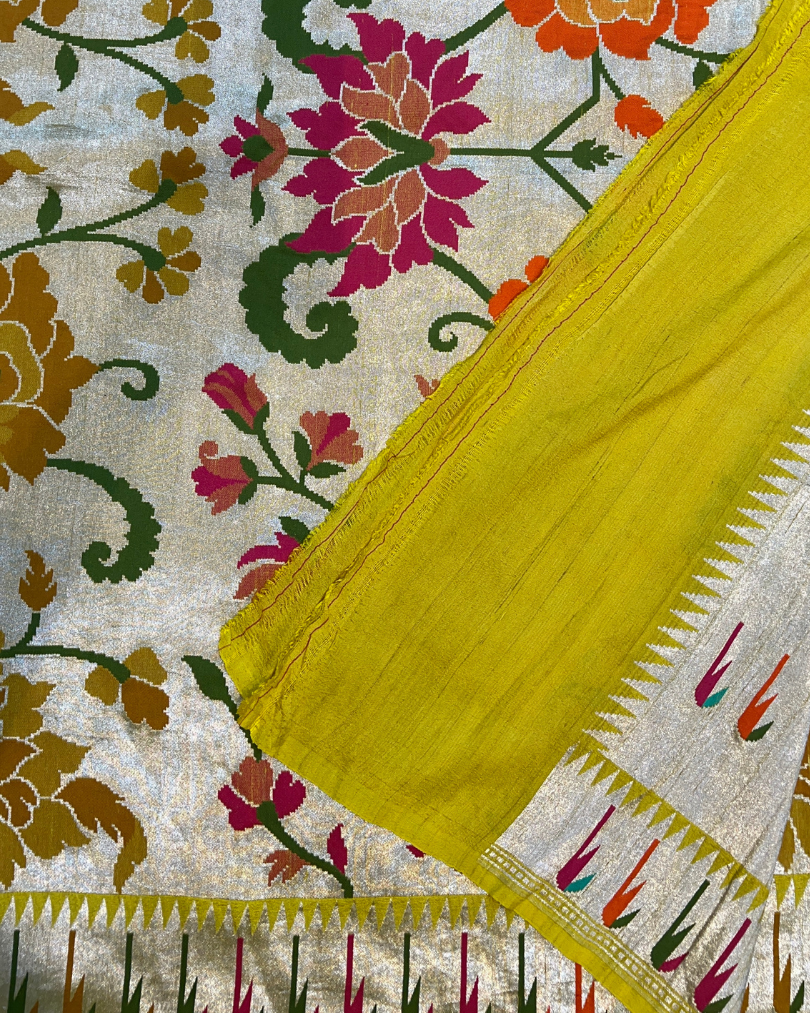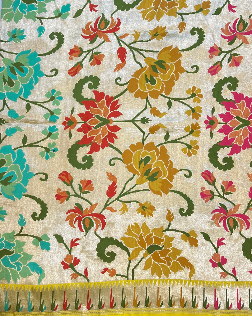 Specialty: Featuring masterful Kadhua weave and authentic floral work meticulously handwoven, this saree highlights exceptional craftsmanship and attention to detail.
