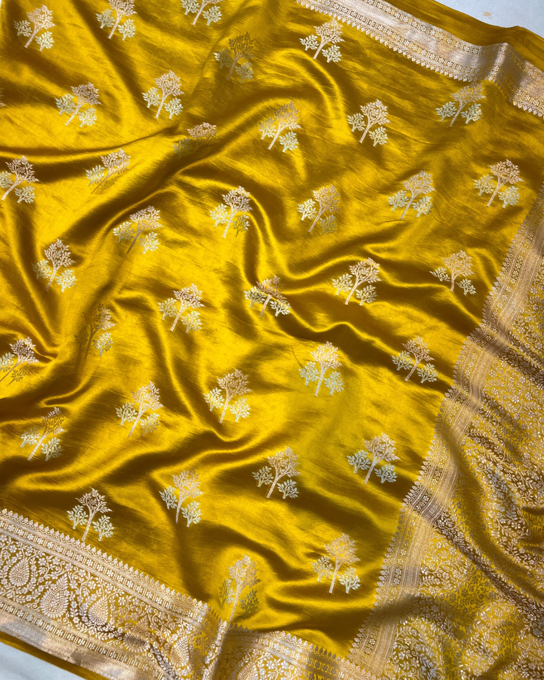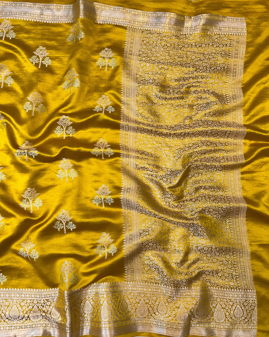 Mustard Yellow Raw Mango Saree