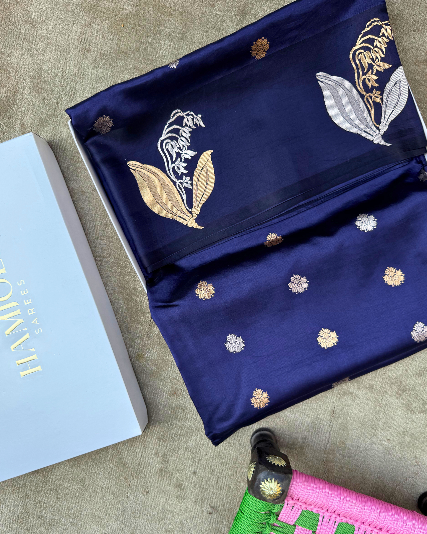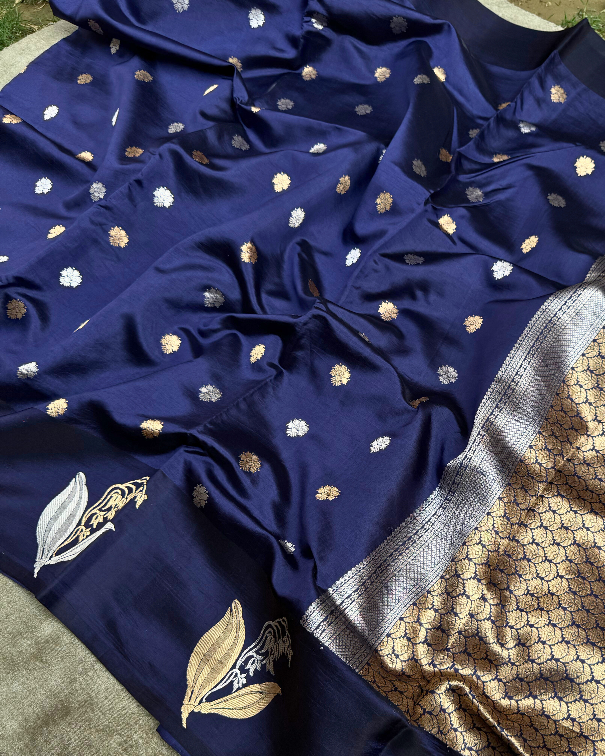 Navy Blue Pure Banarasi Mulberry Soft Silk Saree