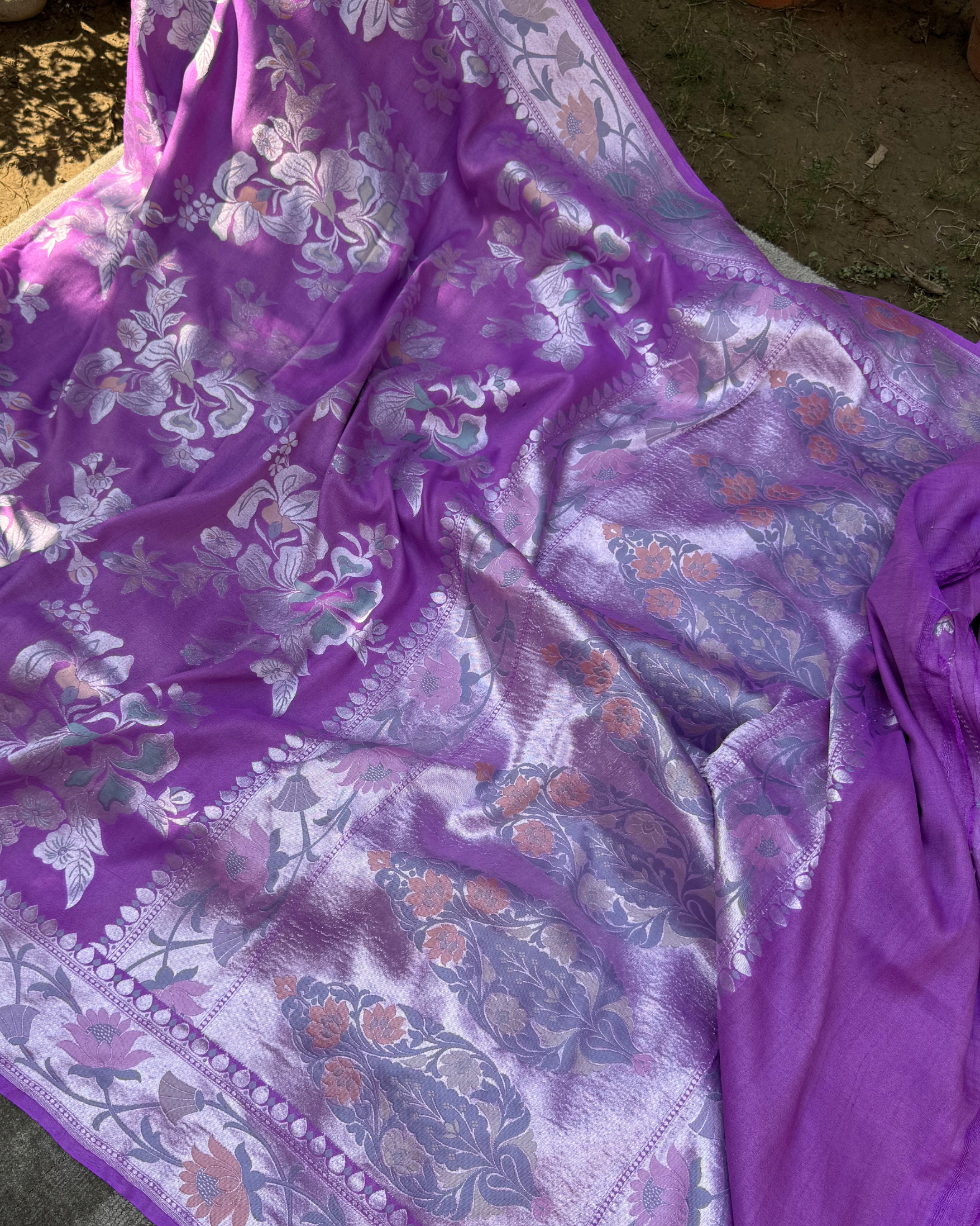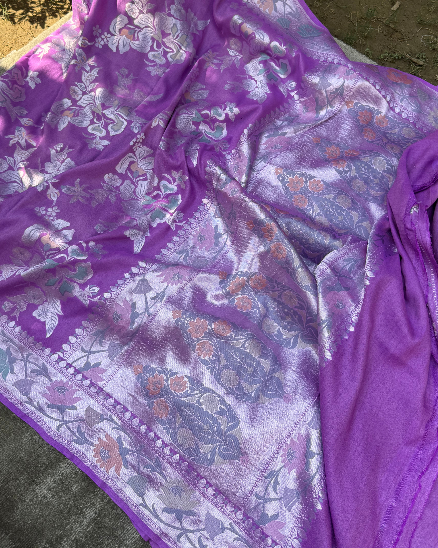 Purple Pink Pure Banarasi Tusser Georgette Saree