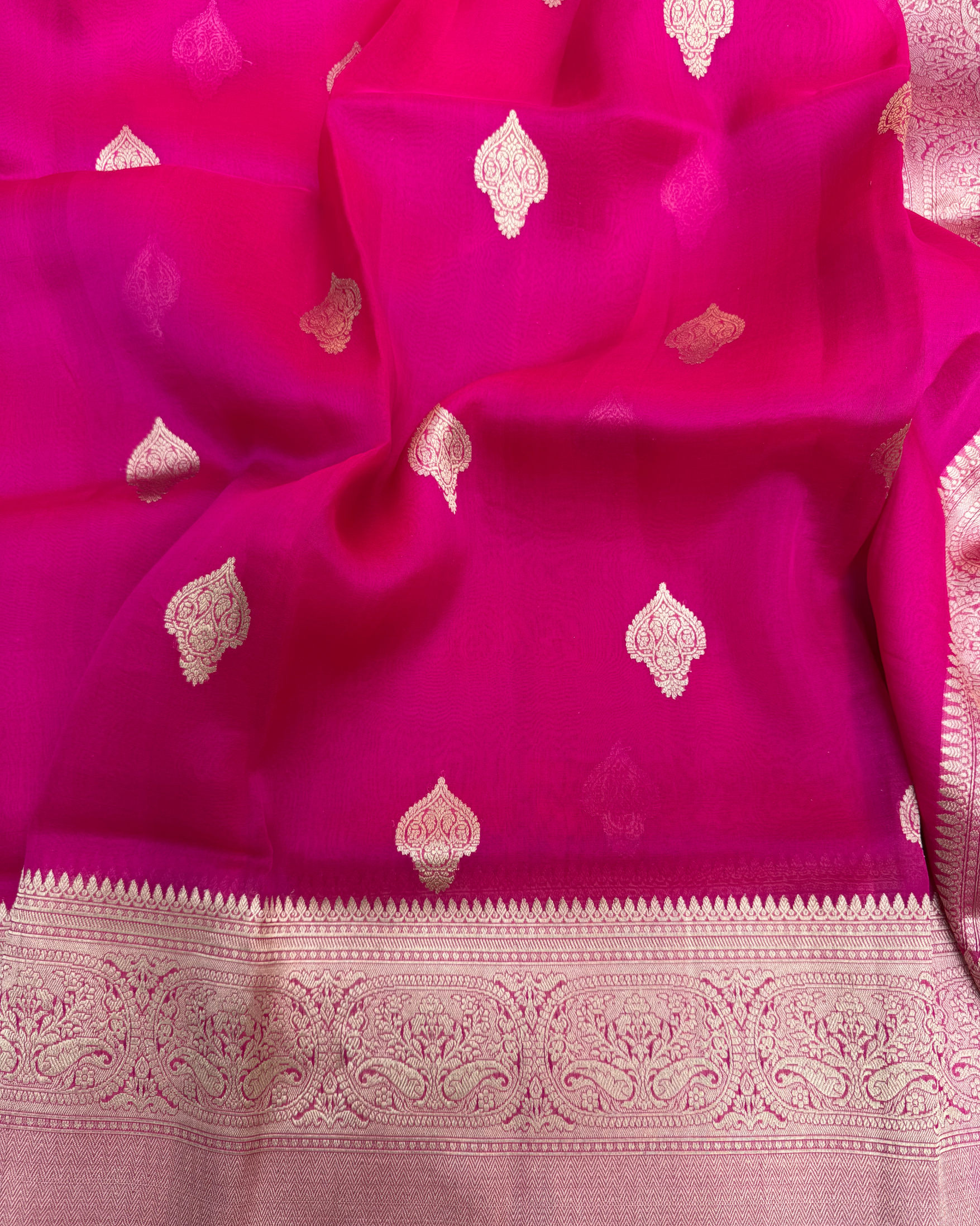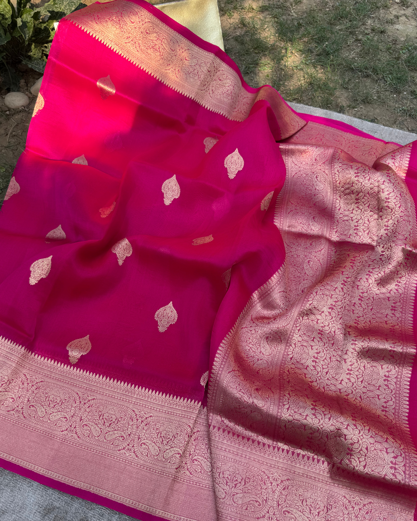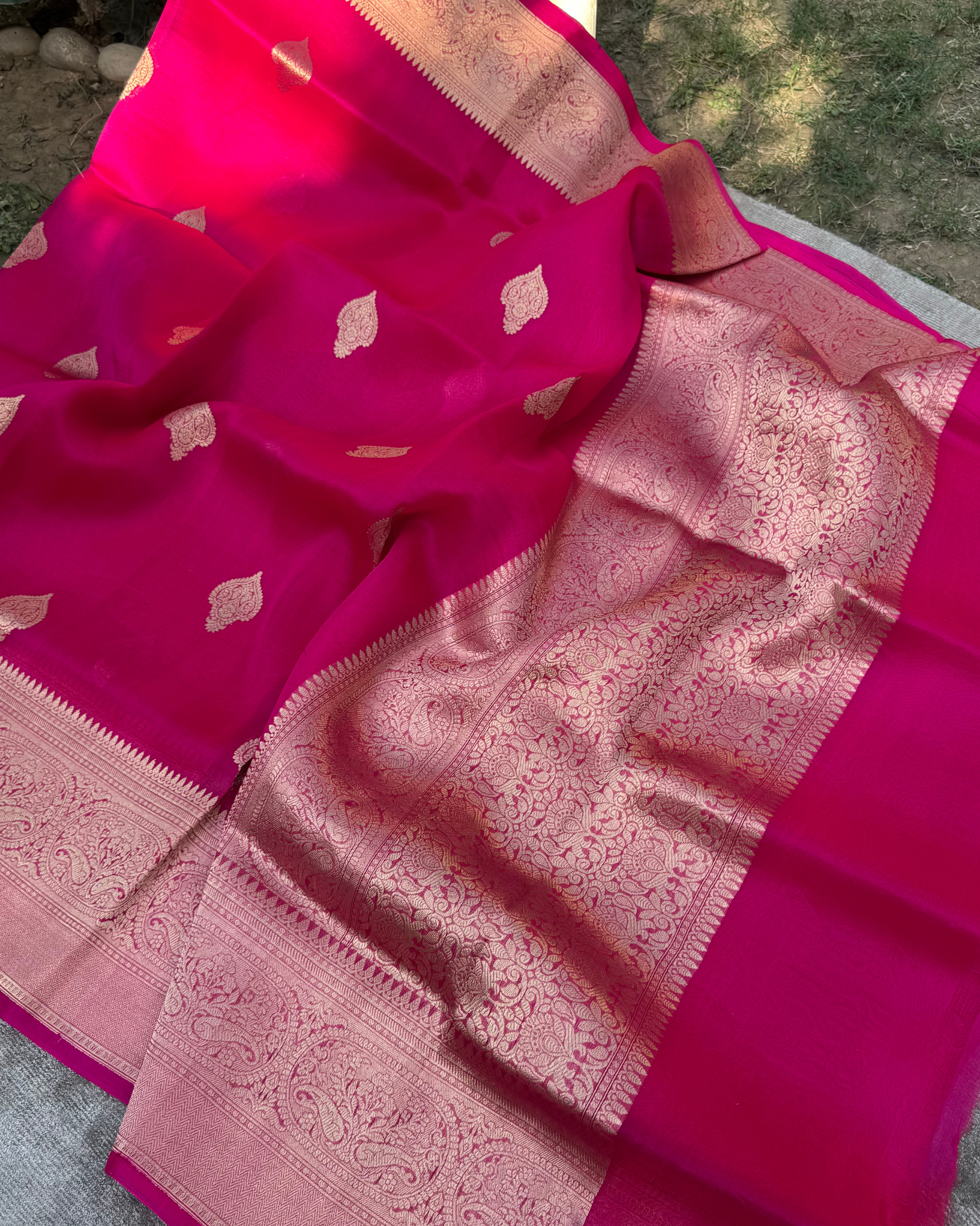 Note: This saree takes approximately 35 to 40 days to handcraft. Skilled artisans employ the traditional Kadwa technique to weave each boota with precision, making it a true labor of love.