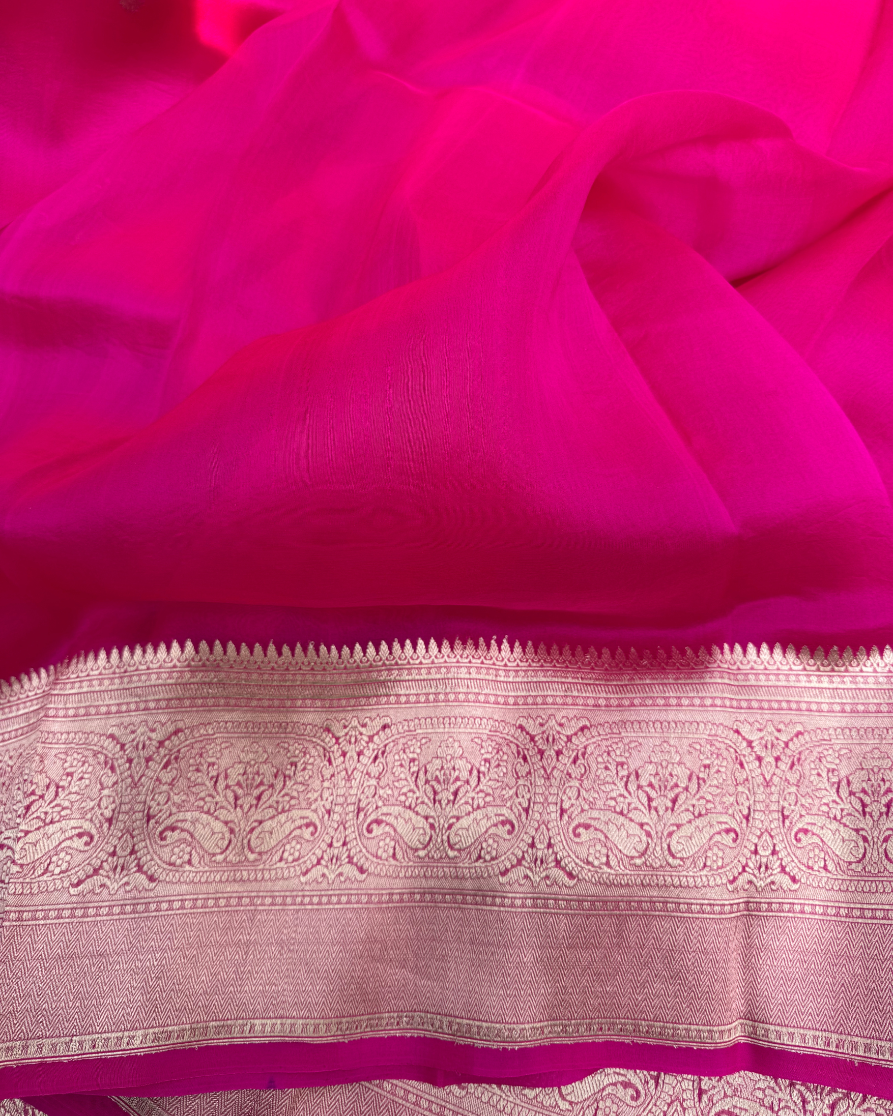 A masterpiece of tradition and artistry, the Banarasi Pure Kora Silk Handloom Saree beautifully showcases the timeless weaving heritage of Banaras. Adorned with intricate Kadwa boota across its expanse, this ethereal saree exudes unmatched elegance and grace.