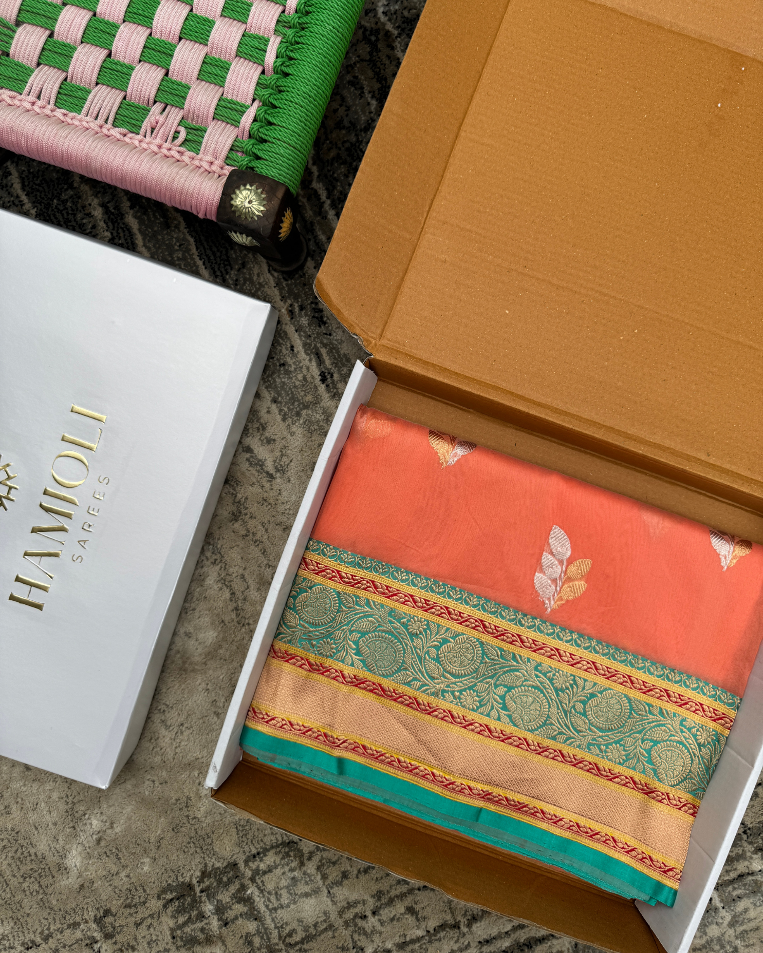 Note: This made-to-order saree takes 20–25 days to craft, woven with care by the artisans at Hamjoli Banaras to deliver elegance in every thread.