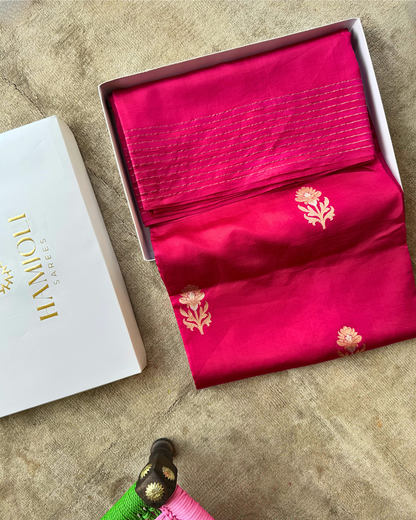 Pink Pure Banarasi Mulberry Soft Silk Saree