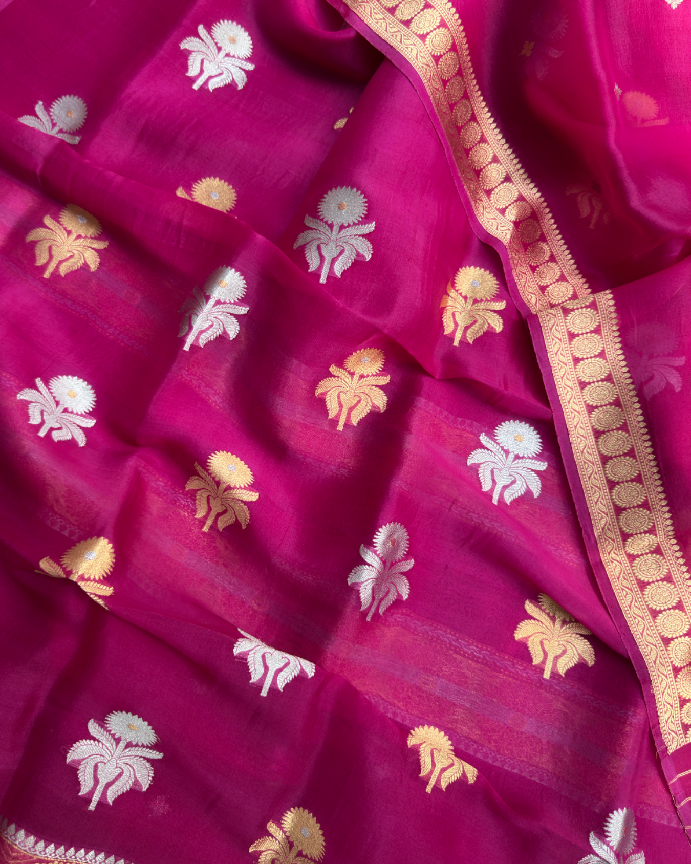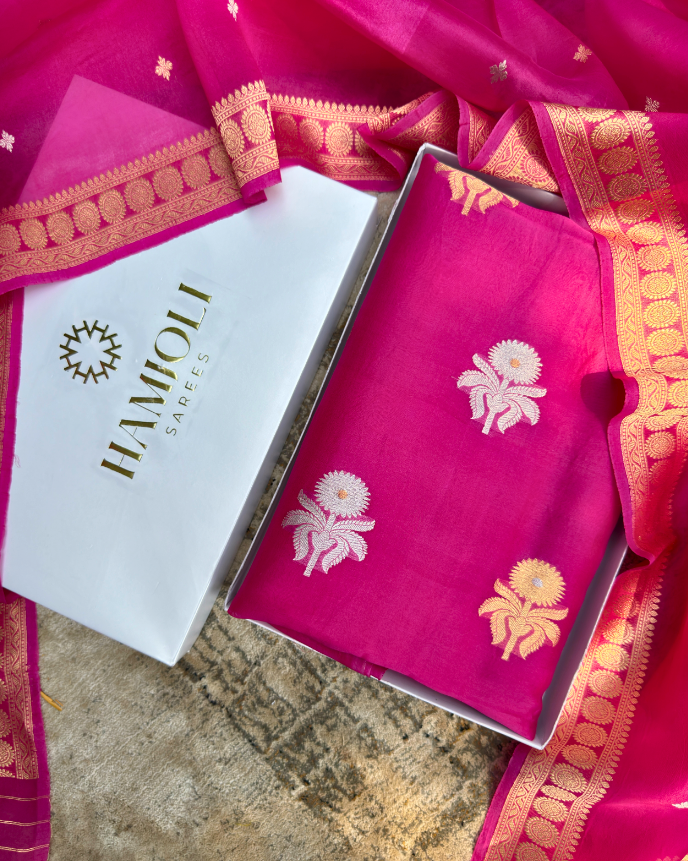 Pink Pure Banarasi Kora Silk Suit Set with Dupatta