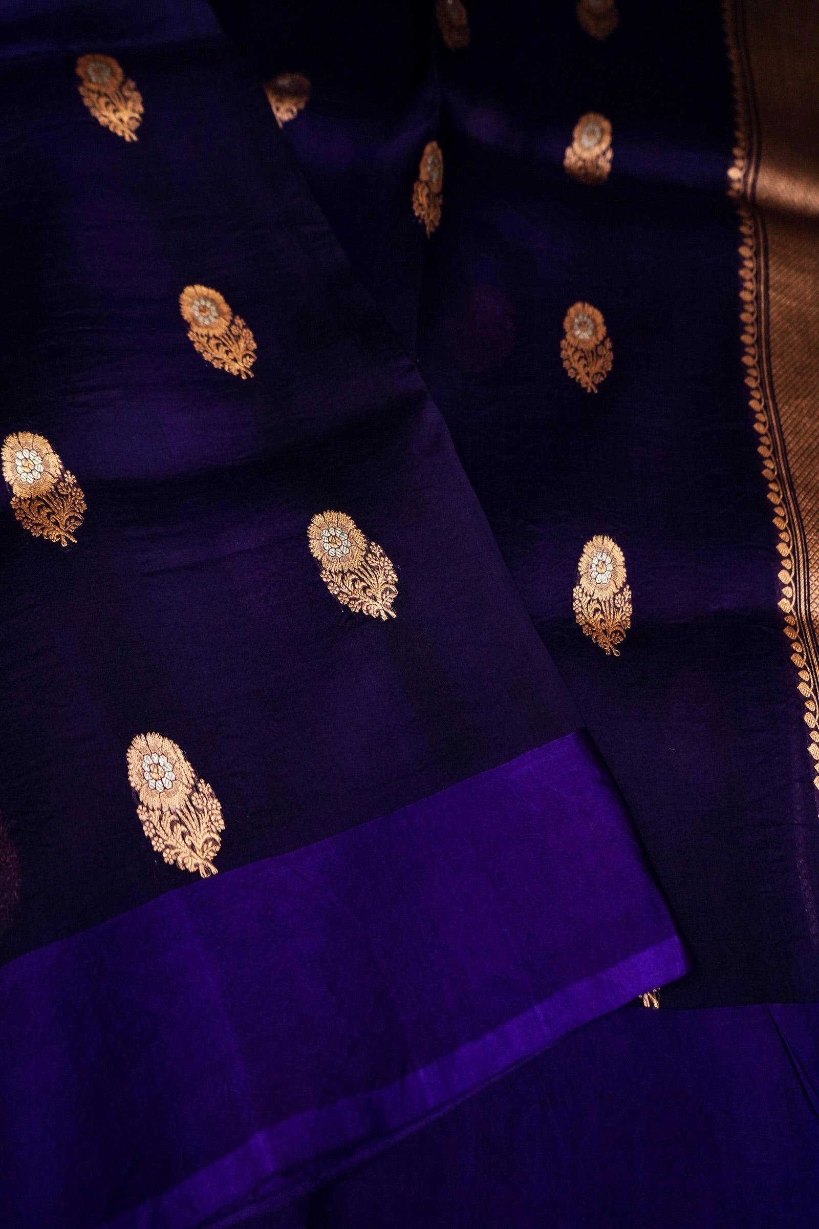 Specialty: Handwoven on traditional looms, this saree reflects the finesse of Banarasi craftsmanship — blending transparency, sheen, and comfort in one exquisite drape.