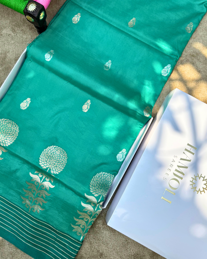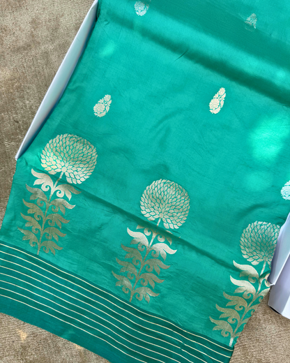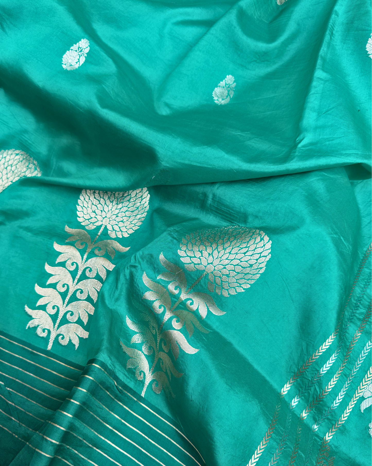 Sea Green Pure Banarasi Mulberry Mango Soft Silk Saree