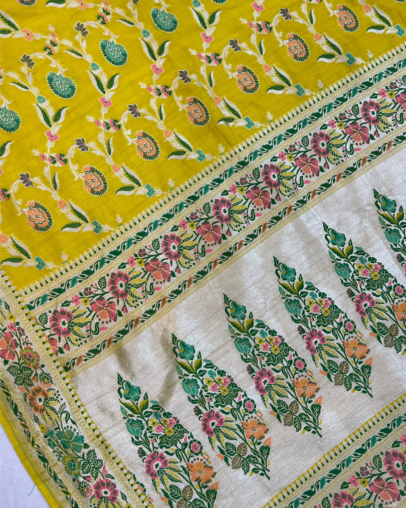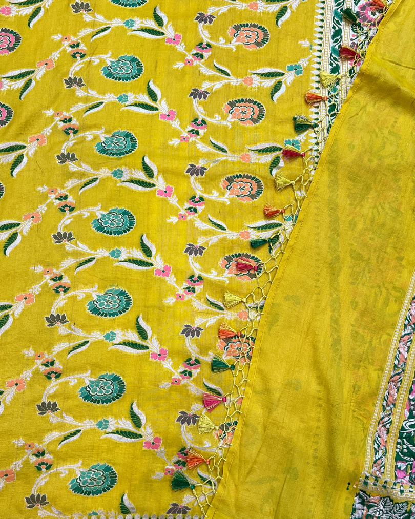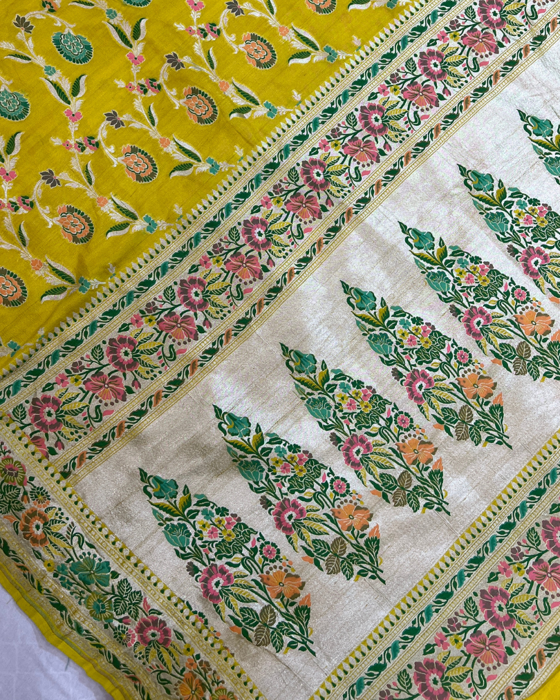 Yellow Tissue Tusser Georgette Banarasi Saree
